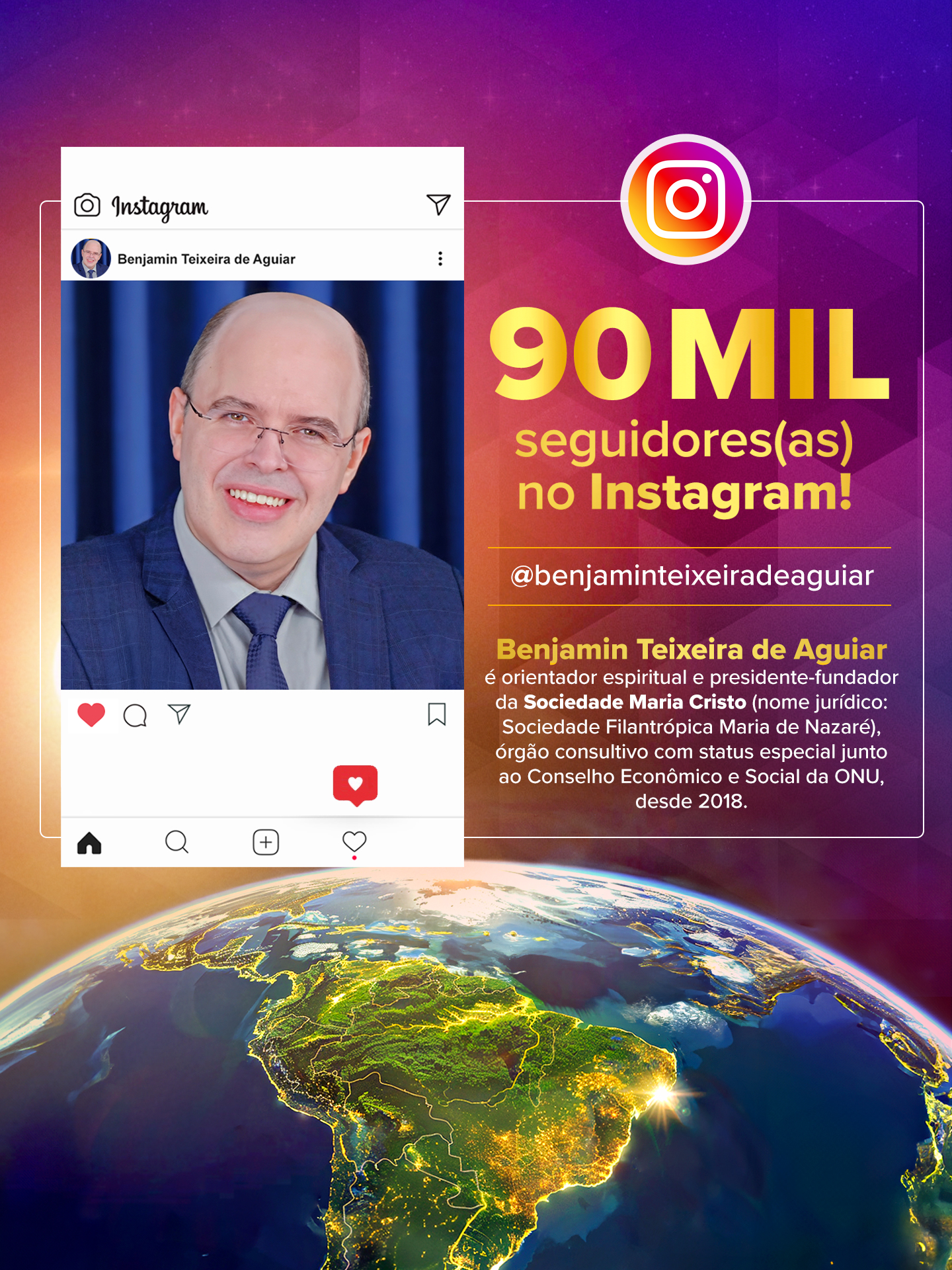 90 mil seguidores(as) no Instagram!13 de março de 2026 | Equipe Sociedade Maria Cristo Siga o orientador espiritual Benjamin Teixeira de Aguiar