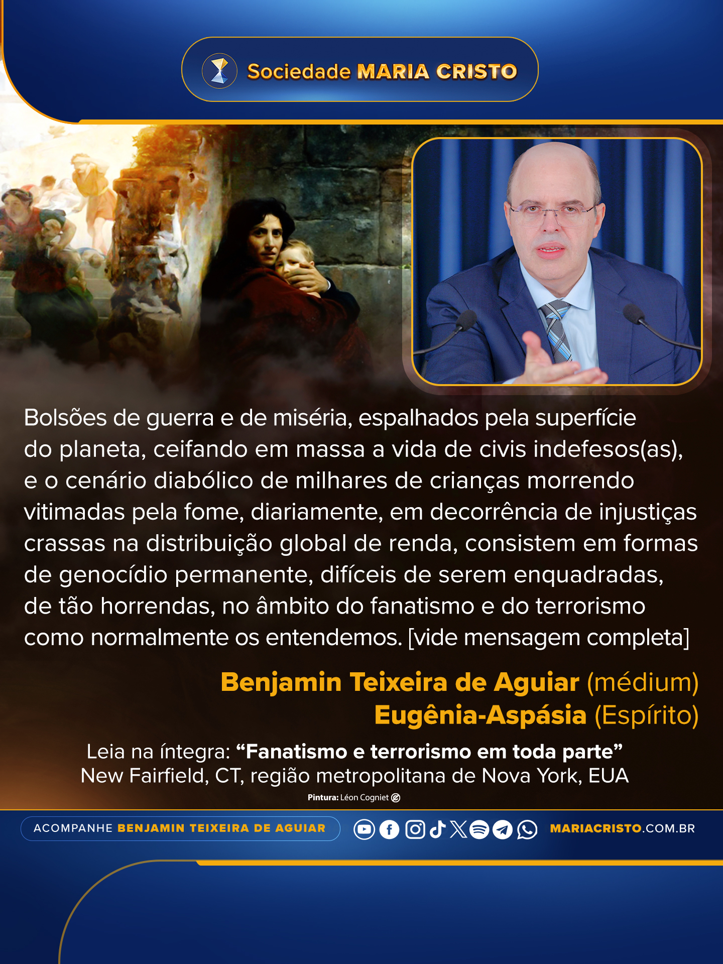 Bolsões de guerra e de miséria, espalhados pela superfície do planeta, ceifando em massa a vida de civis indefesos(as), e o cenário diabólico de milhares de crianças morrendo vitimadas pela fome, diariamente, em decorrência de injustiças crassas na distribuição global de renda, consistem em formas de genocídio permanente, difíceis de serem enquadradas, de tão horrendas, no âmbito do fanatismo e do terrorismo como normalmente os entendemos.
