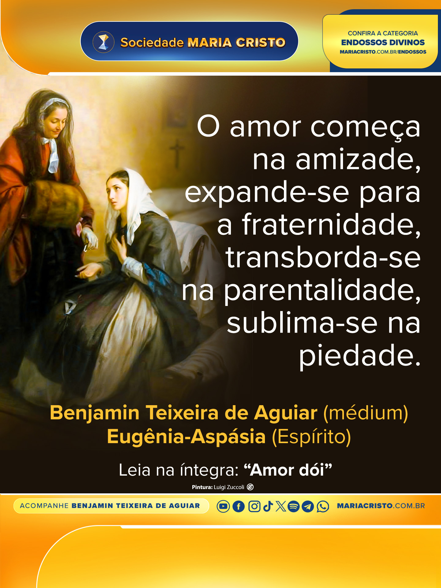 O amor começa na amizade, expande-se para a fraternidade, transborda-se na parentalidade, sublima-se na piedade.