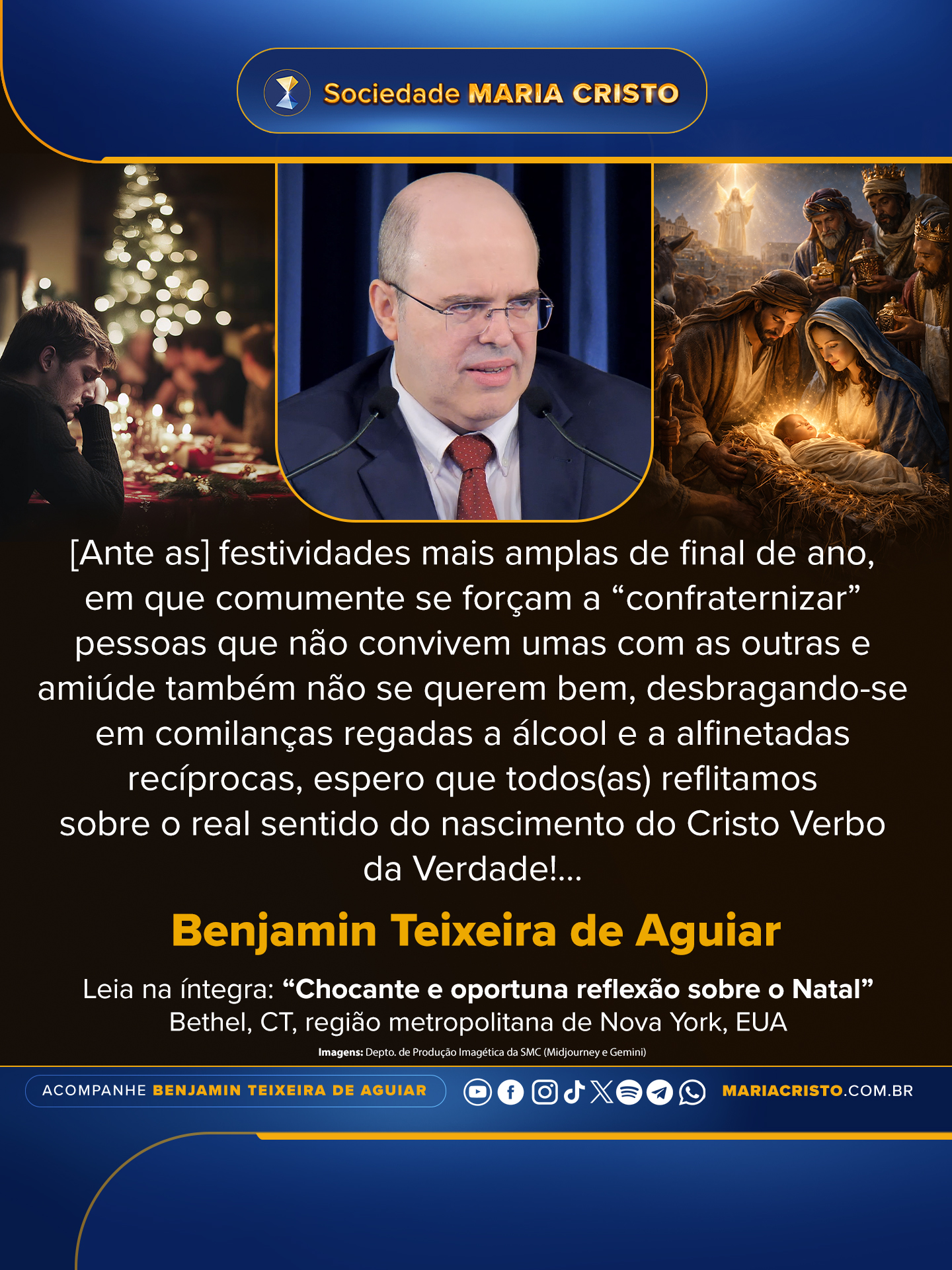 Com a pandemia e a sensata suspensão das festividades mais amplas de final de ano, em que comumente se forçam a “confraternizar” pessoas que não convivem umas com as outras e amiúde também não se querem bem, desbragando-se em comilanças regadas a álcool e a alfinetadas recíprocas, espero que todos(as) reflitamos sobre o real sentido do nascimento do Cristo Verbo da Verdade!…