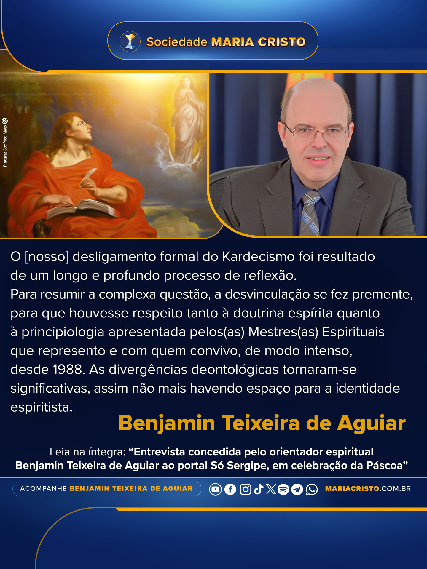 BTA – O desligamento formal do Kardecismo foi resultado de um longo e profundo processo de reflexão. Para resumir a complexa questão, a desvinculação se fez premente, para que houvesse respeito tanto à doutrina espírita quanto à principiologia apresentada pelos(as) Mestres(as) Espirituais que represento e com quem convivo, de modo intenso, desde 1988. As divergências deontológicas tornaram-se significativas, assim não mais havendo espaço para a identidade espiritista.
