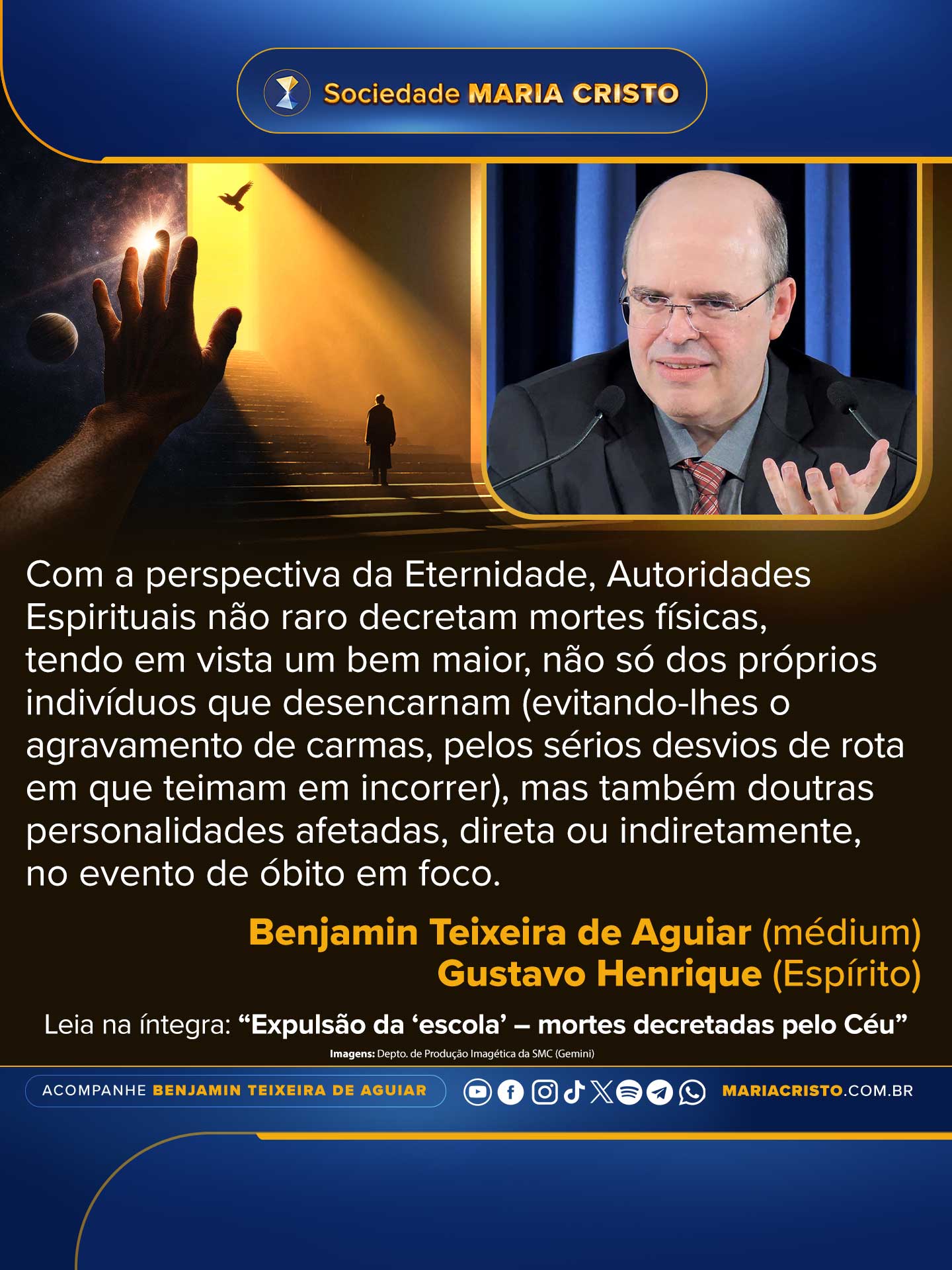 O Direito e a Justiça terrenos alcançam tão só a esfera das relações entre seres humanos encarnados. Com a perspectiva da Eternidade, Autoridades Espirituais não raro decretam mortes físicas, tendo em vista um bem maior, não só dos próprios indivíduos que desencarnam (evitando-lhes o agravamento de carmas, pelos sérios desvios de rota em que teimam em incorrer), mas também doutras personalidades afetadas, direta ou indiretamente, no evento de óbito em foco.