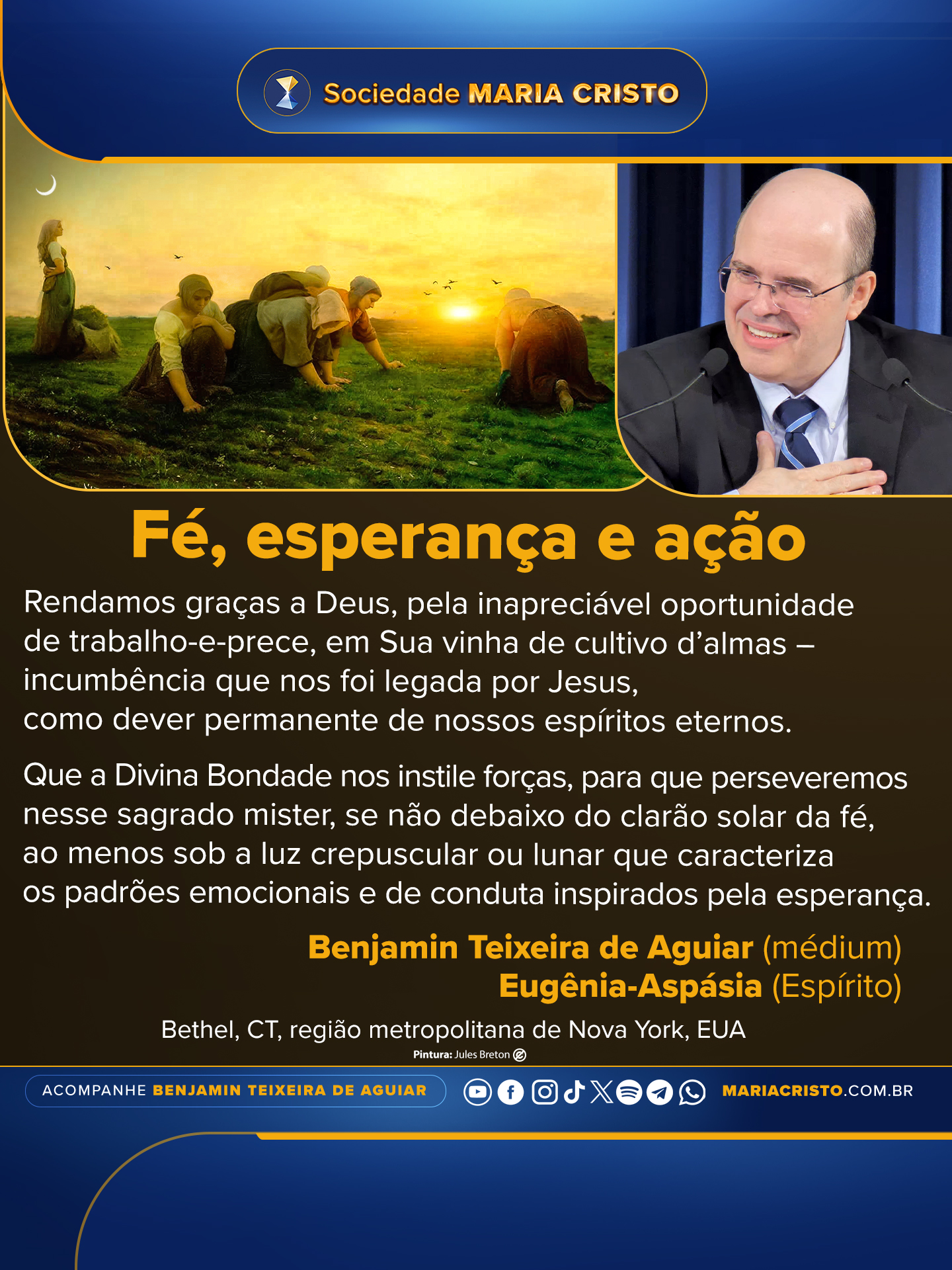 Que a Divina Bondade nos instile forças, para que perseveremos nesse sagrado mister, se não debaixo do clarão solar da fé, ao menos sob a luz crepuscular ou lunar que caracteriza os padrões emocionais e de conduta inspirados pela esperança.