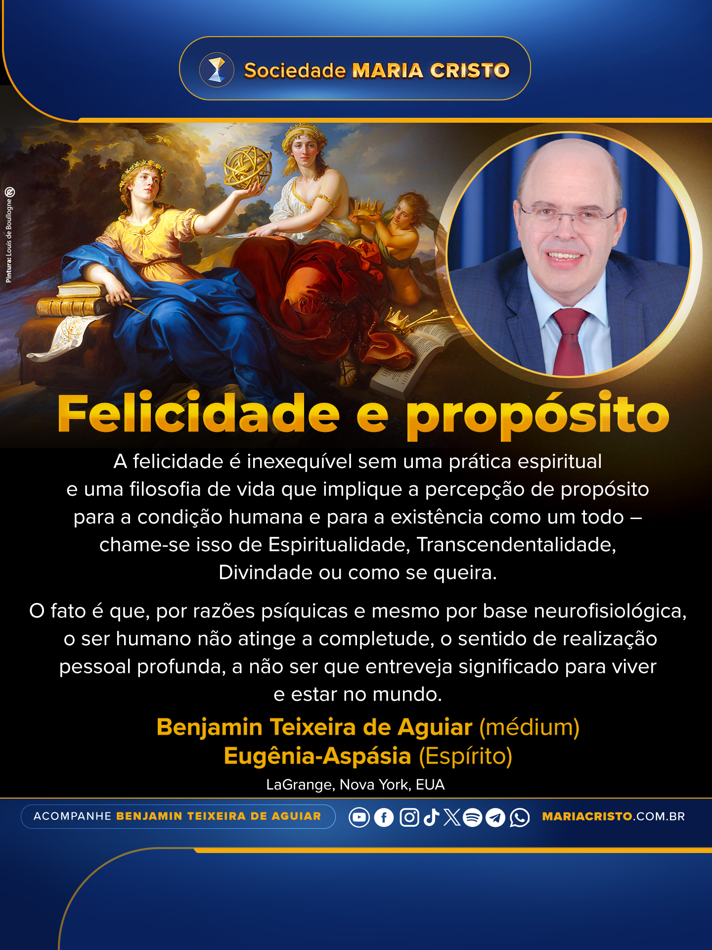 A felicidade é inexequível sem uma prática espiritual e uma filosofia de vida que implique a percepção de propósito para a condição humana e para a existência como um todo – chame-se isso de Espiritualidade, Transcendentalidade, Divindade ou como se queira.