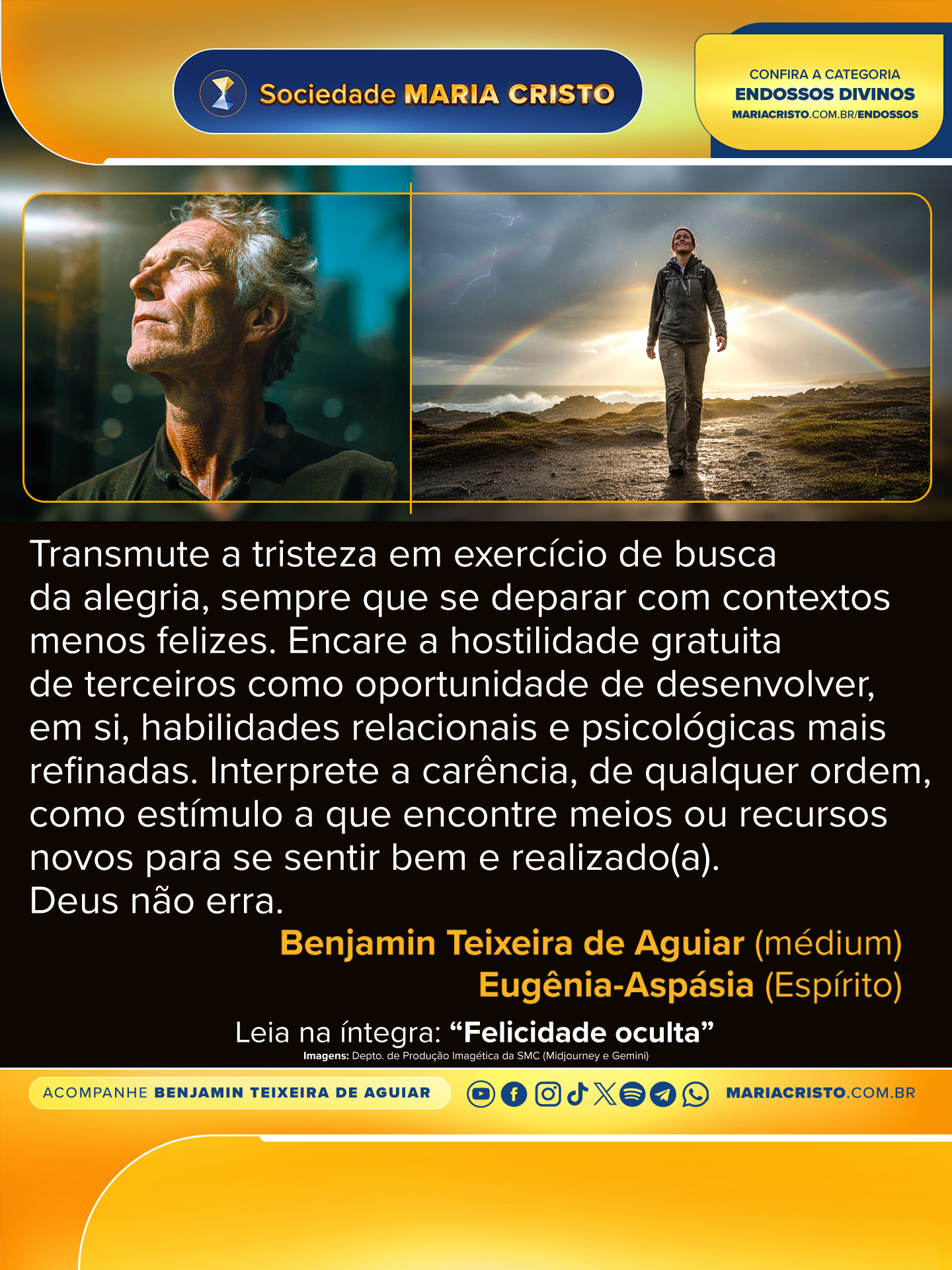 Transmute a tristeza em exercício de busca da alegria, sempre que se deparar com contextos menos felizes.