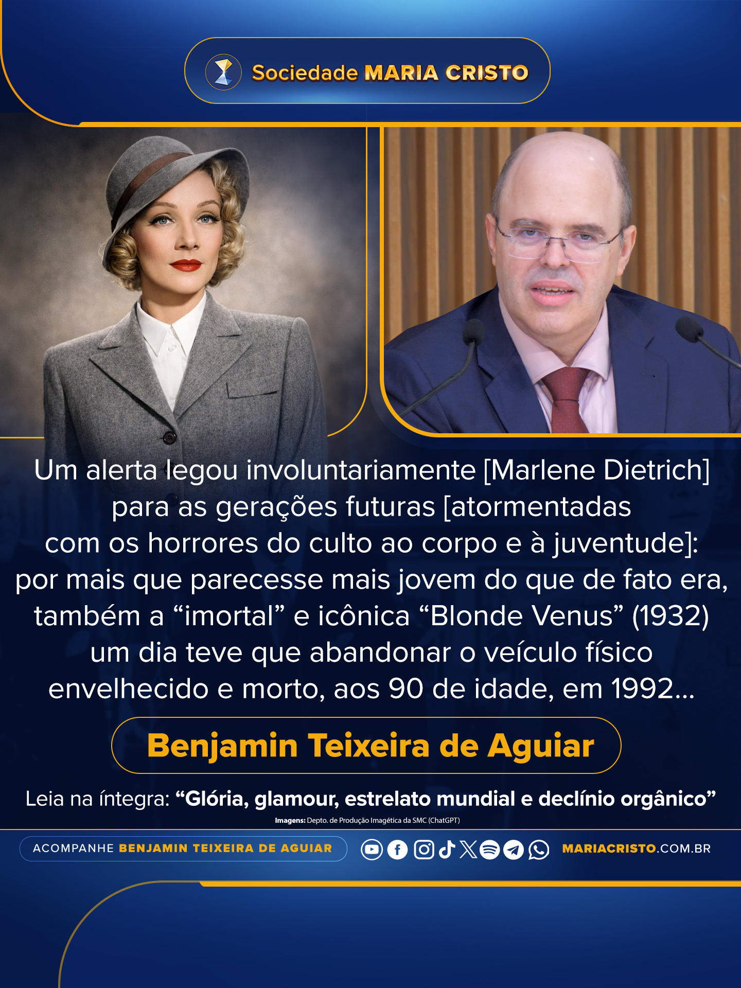 Um alerta legou involuntariamente para as gerações futuras: por mais que parecesse mais jovem do que de fato era, também a “imortal” e icônica “Blonde Venus” (1932) um dia teve que abandonar o veículo físico envelhecido e morto, aos 90 de idade, em 1992…