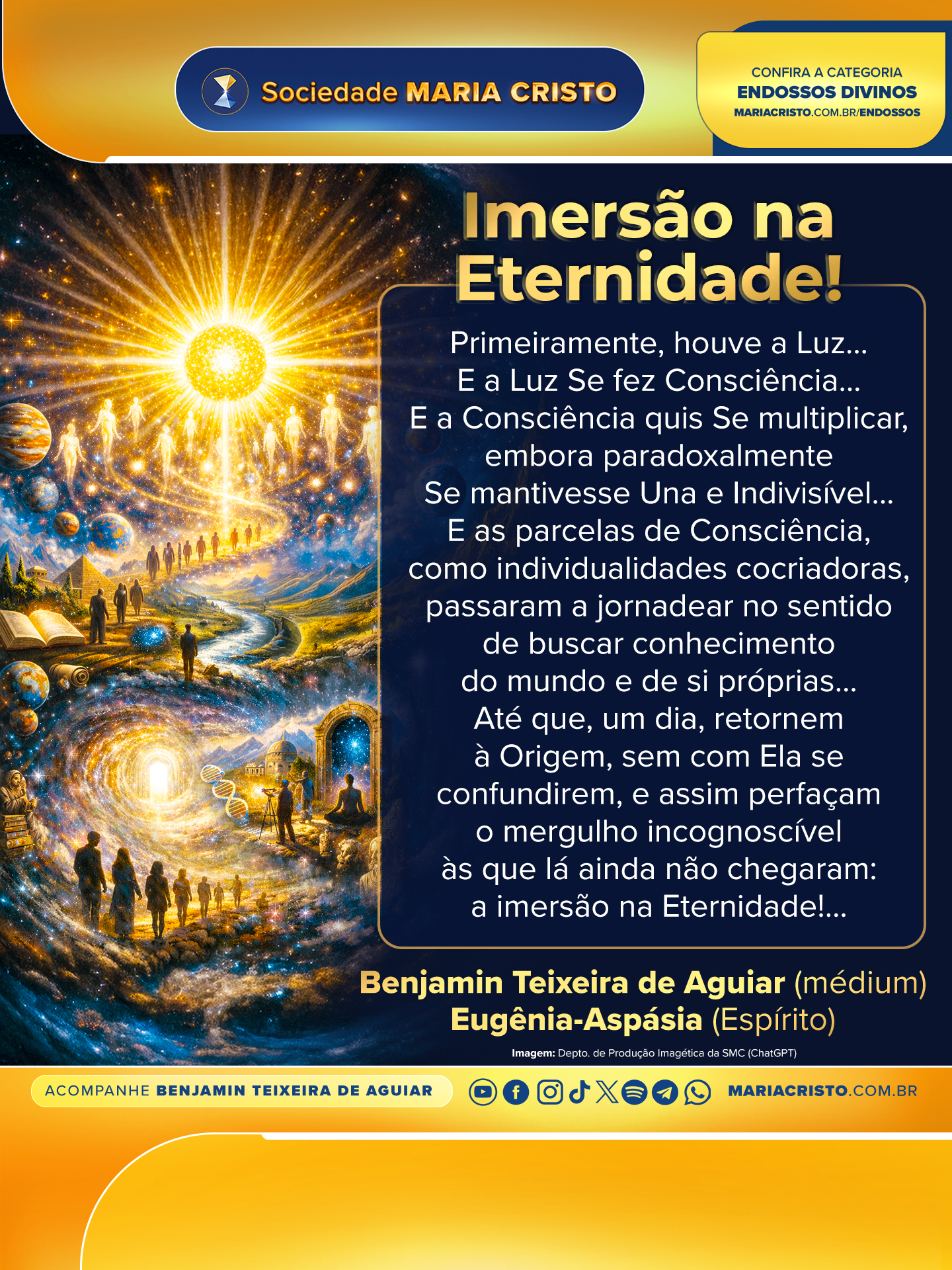 Até que, um dia, retornem à Origem, sem com Ela se confundirem, e assim perfaçam o mergulho incognoscível às que lá ainda não chegaram: a imersão na Eternidade!…