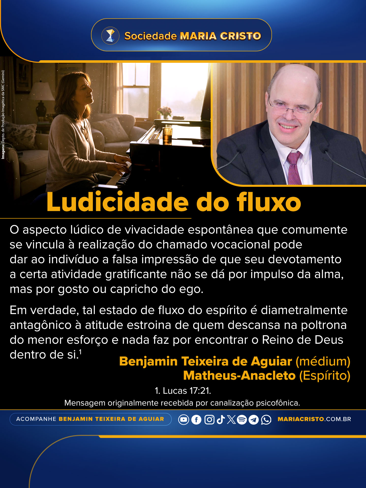 Em verdade, tal estado de fluxo do espírito é diametralmente antagônico à atitude estroina de quem descansa na poltrona do menor esforço e nada faz por encontrar o Reino de Deus dentro de si.¹
