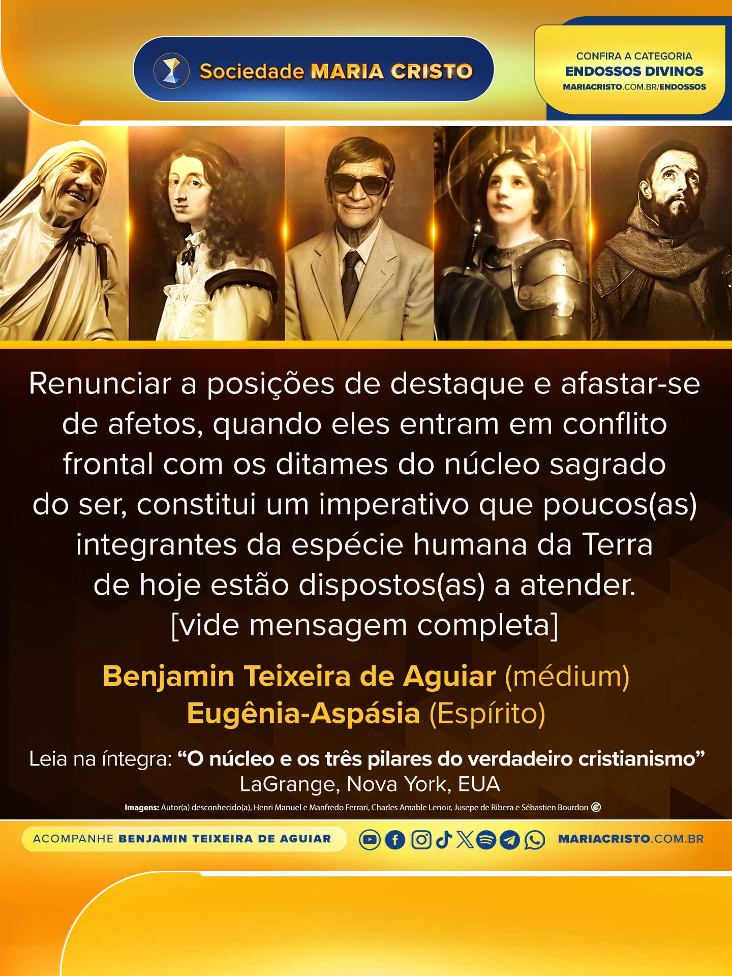 Renunciar a posições de destaque e afastar-se de afetos, quando eles entram em conflito frontal com os ditames do núcleo sagrado do ser, constituem imperativos que poucos(as) integrantes da espécie humana da Terra de hoje estão dispostos(as) a atender.