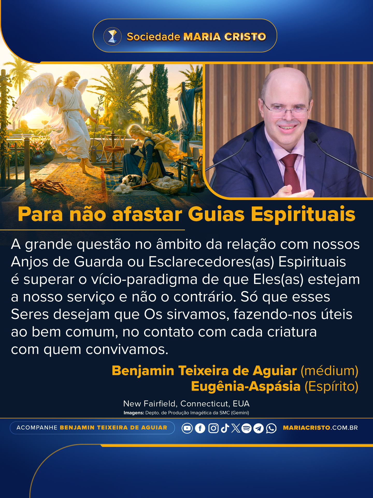 A grande questão no âmbito da relação com nossos Anjos de Guarda ou Esclarecedores(as) Espirituais é superar o vício-paradigma de que Eles(as) estejam a nosso serviço e não o contrário. Só que esses Seres desejam que Os sirvamos, fazendo-nos úteis ao bem comum, no contato com cada criatura com quem convivamos.