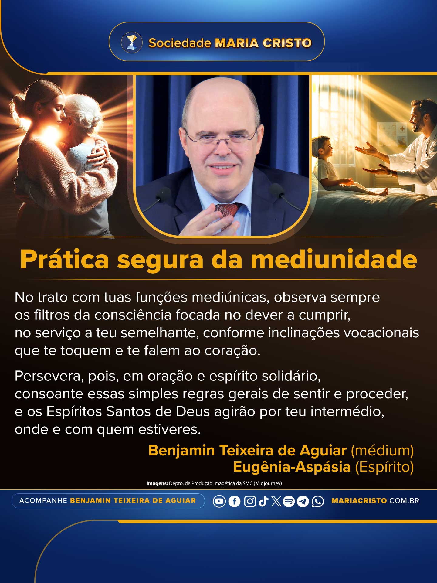 No trato com tuas funções mediúnicas, observa sempre os filtros da consciência focada no dever a cumprir, no serviço a teu semelhante, conforme inclinações vocacionais que te toquem e te falem ao coração.