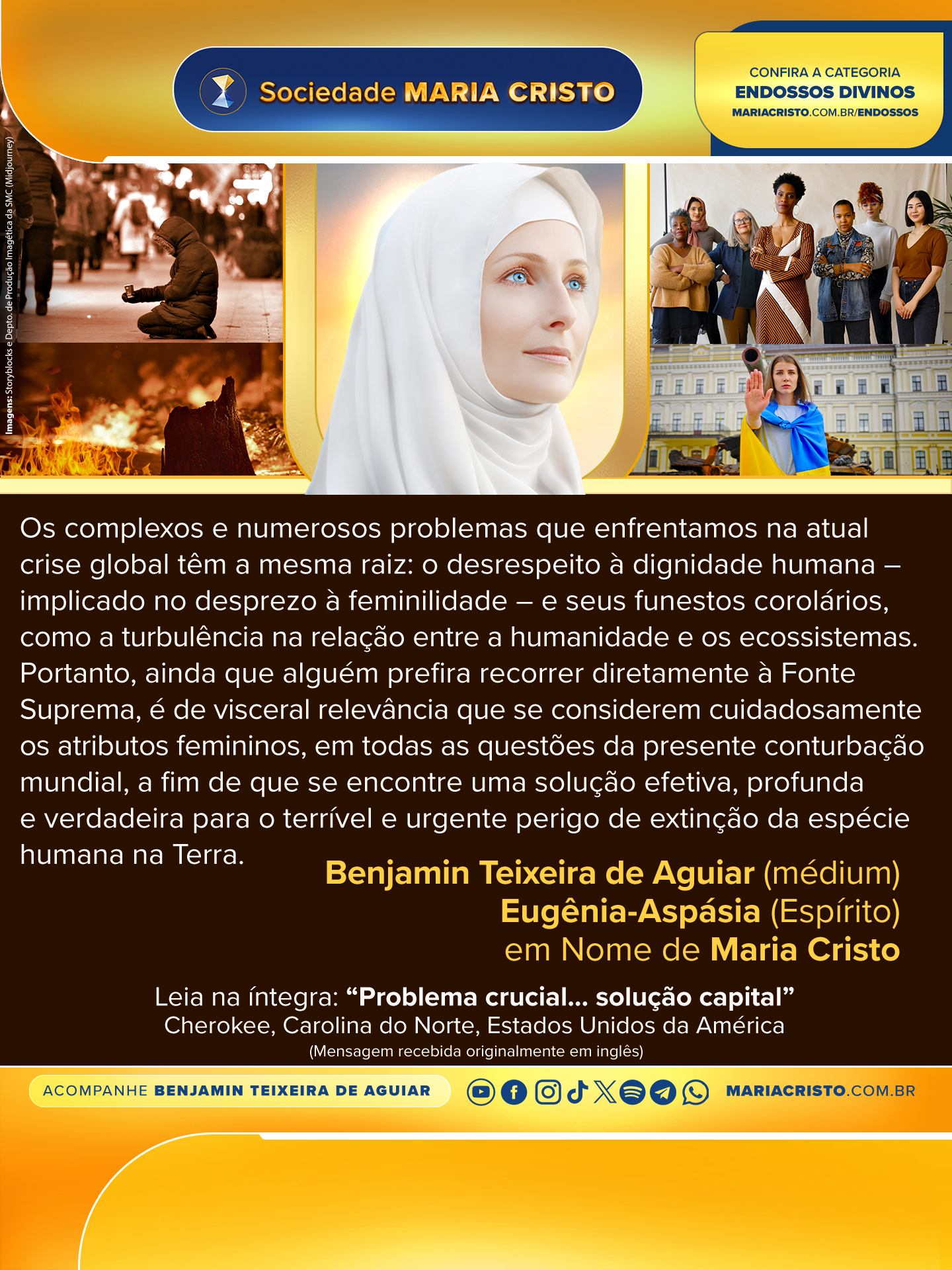 Portanto, ainda que alguém prefira recorrer diretamente à Fonte Suprema, é de visceral relevância que se considerem cuidadosamente os atributos femininos, em todas as questões da presente conturbação mundial, a fim de que se encontre uma solução efetiva, profunda e verdadeira para o terrível e urgente perigo de extinção da espécie humana na Terra.