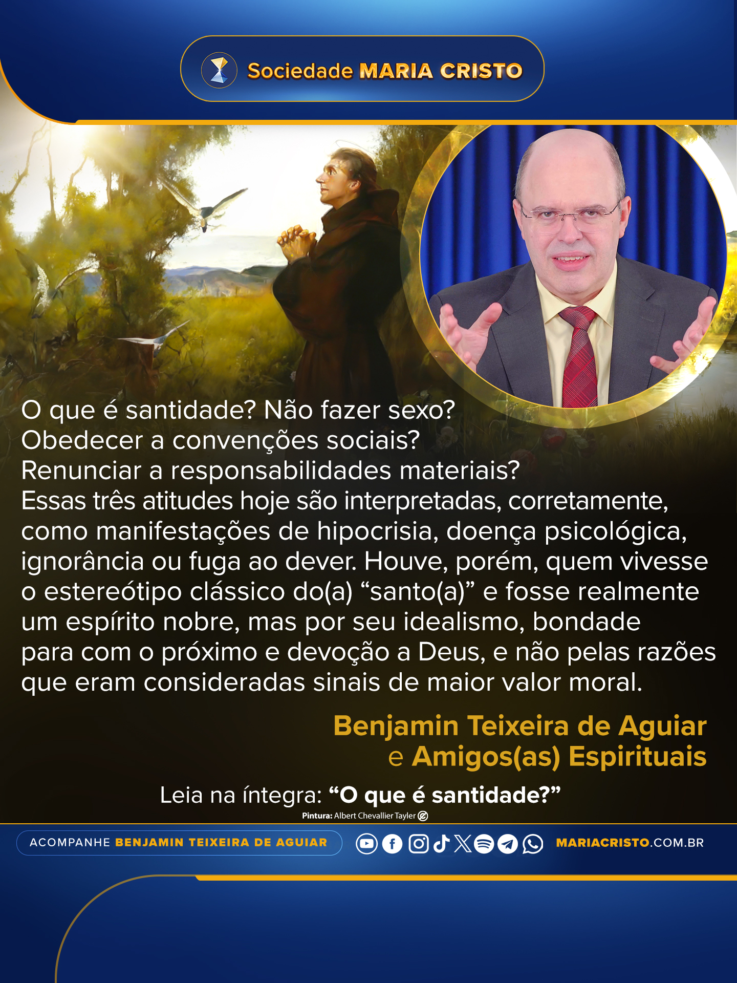 Houve, porém, quem vivesse o estereótipo clássico do ‘santo’ e fosse realmente um espírito nobre, mas por seu idealismo, bondade para com o próximo e devoção a Deus, e não pelas razões que eram consideradas sinais de maior valor moral.