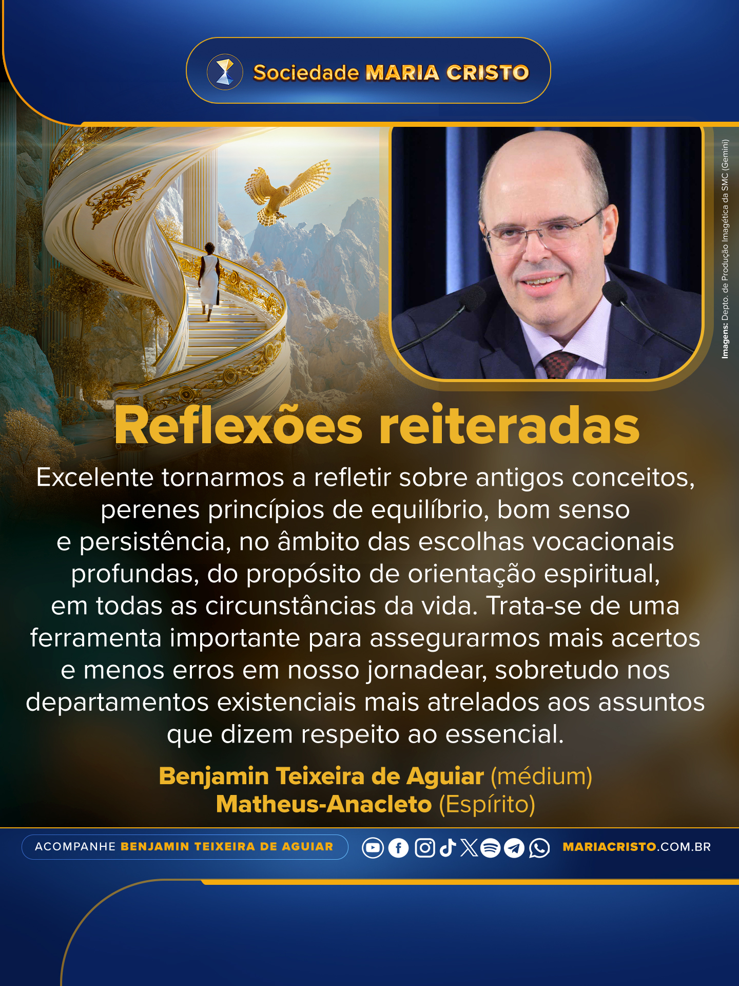 Excelente tornarmos a refletir sobre antigos conceitos, perenes princípios de equilíbrio, bom senso e persistência, no âmbito das escolhas vocacionais profundas, do propósito de orientação espiritual, em todas as circunstâncias da vida. Trata-se de uma ferramenta importante para assegurarmos mais acertos e menos erros em nosso jornadear, sobretudo nos departamentos existenciais mais atrelados aos assuntos que dizem respeito ao essencial.