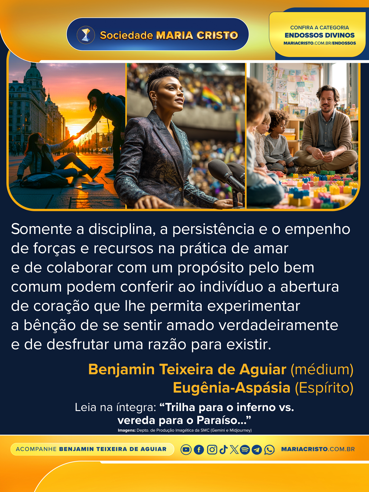Somente a disciplina, a persistência e o empenho de forças e recursos na prática de amar e de colaborar com um propósito pelo bem comum podem conferir ao indivíduo a abertura de coração que lhe permita experimentar a bênção de se sentir amado verdadeiramente e de desfrutar uma razão para existir.