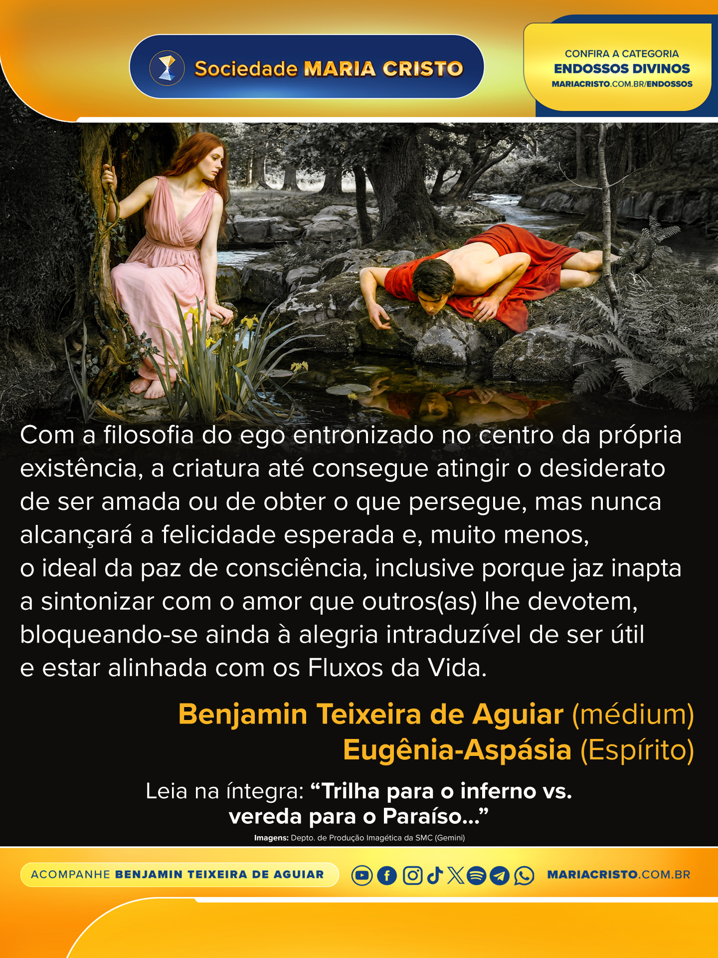 Com a filosofia do ego entronizado no centro da própria existência, a criatura até consegue atingir o desiderato de ser amada ou de obter o que persegue, mas nunca alcançará a felicidade esperada e, muito menos, o ideal da paz de consciência, inclusive porque jaz inapta a sintonizar com o amor que outros(as) lhe devotem, bloqueando-se ainda à alegria intraduzível de ser útil e estar alinhada com os Fluxos da Vida.