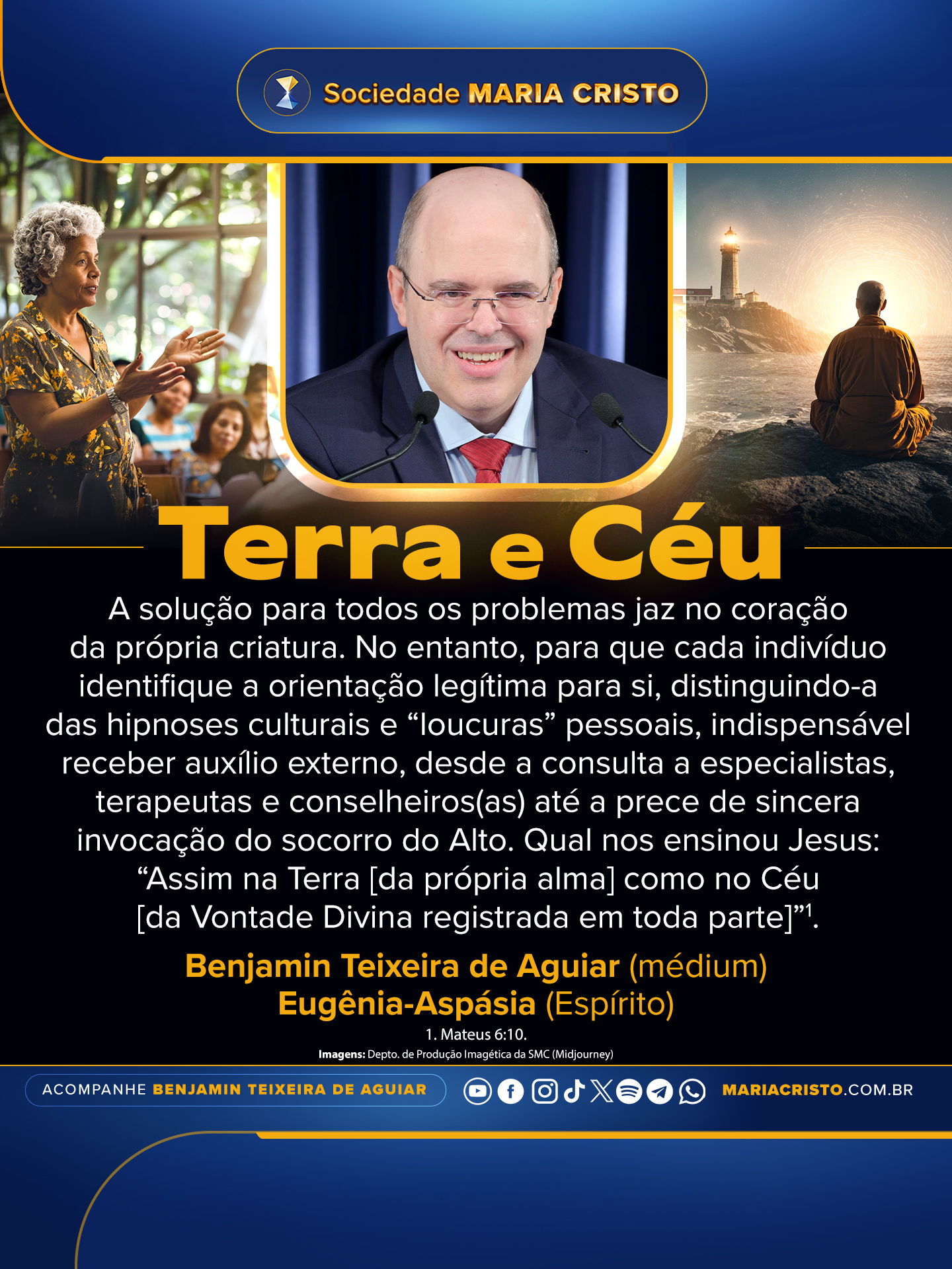 Qual nos ensinou Jesus: “Assim na Terra [da própria alma] como no Céu [da Vontade Divina registrada em toda parte]”1.